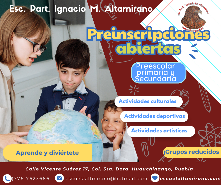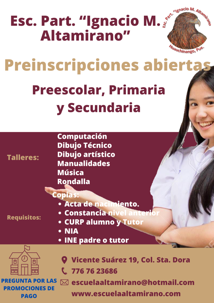 INFORMES AL TELEFONO DE LA ESCUELA (01776) 76 2 36 86. CORREO: escuelaaltamirano@hotmail.com